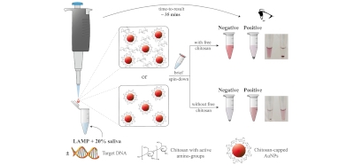 Work carried out in Biosensors lab demonstrates a novel method to detect isothermally amplified nucleic acids through naked-eye observation, utilizing chitosan-capped AuNPs. This work impacts global diagnostics through the demonstration of an instrument-free detection method, suitable for PoCT.